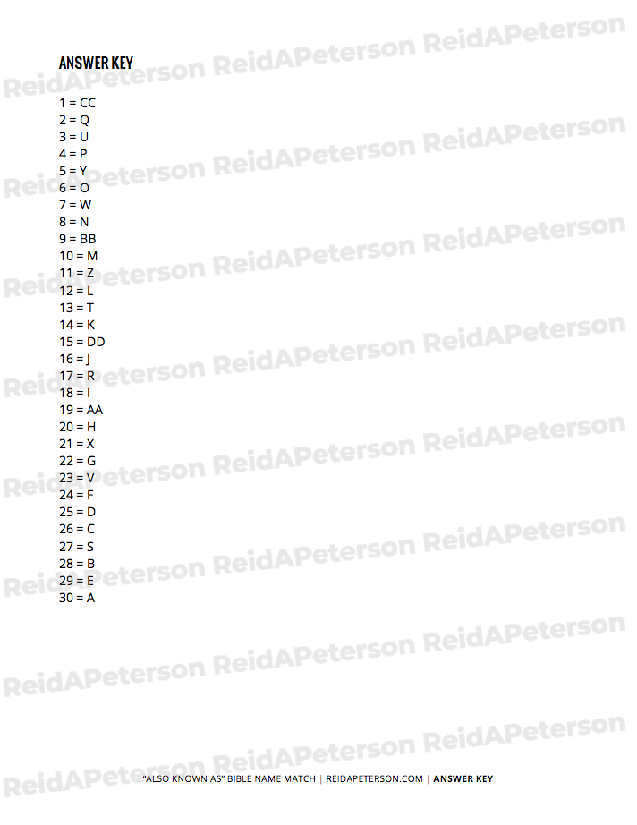 This Bible name match game is one of many digital print-and-play activities by Reid A. Peterson. This product is ideal for use at youth group, kids ministry class, or at home. This product includes the rights for personal usage only. Please contact Reid directly with any questions or comments about this product. Please help share with game with others by sharing it to social media venues such as Pinterest. If you’re looking to download other Bible games, view the Bible Games archive. If you’re looking for a catalogue of all games, view the full Games archive. Lastly, don’t miss out on the Paper Game Printables Super Pack for bundle of discounted games of all kinds.