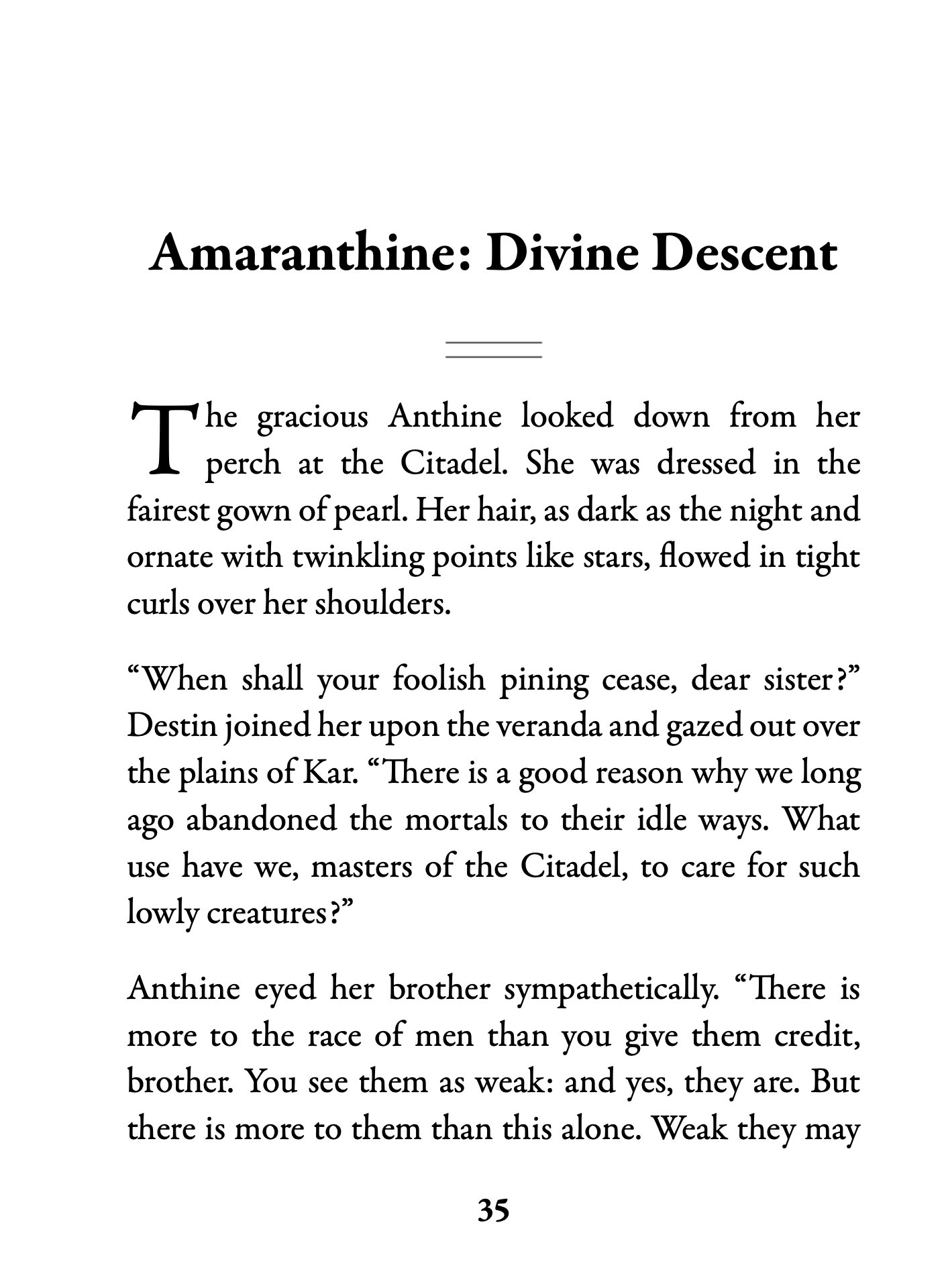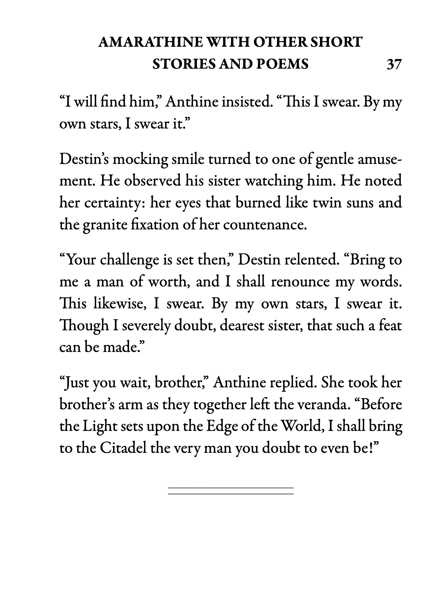 The stories and poems in this volume show tantalizing glimpses into various realities. The stories left me yearning for further time spent in those worlds, particularly the forest of clocks in “Threshold of Dawn.” This collection’s atmosphere reminds me of the fairy lands of George MacDonald, or the Wood Between the Worlds in CS Lewis’ “The Magician’s Nephew.” I recommend this book for all those who remember the beauty of classic fairy tales. Enjoy with ambient piano music or minimalist Philip Glass-style compositions.
