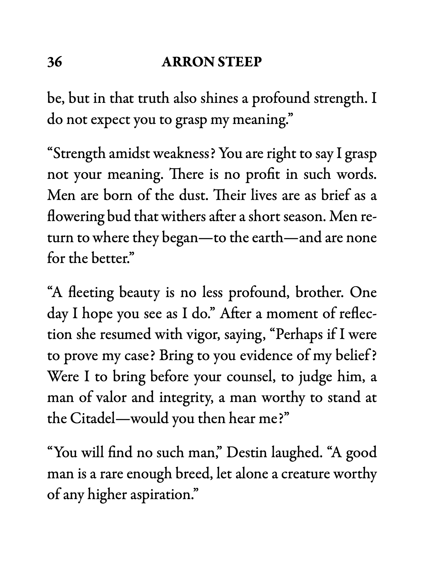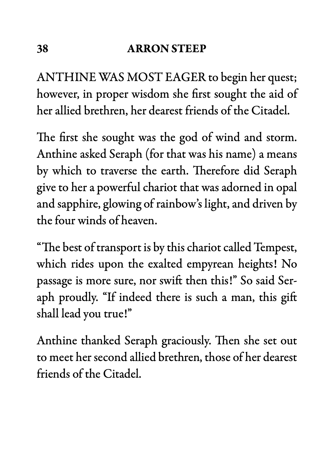 Arron Steep immediately and artfully immerses the reader into the setting of the story with vivid descriptions and word pictures. The reader is transported to another time and place and is not only entertained, but challenged and inspired by the spiritual truths in the imagery.
