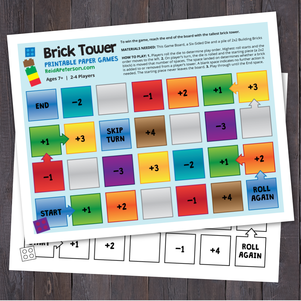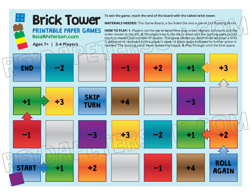 To win the game, reach the end of the board with the tallest brick tower.
