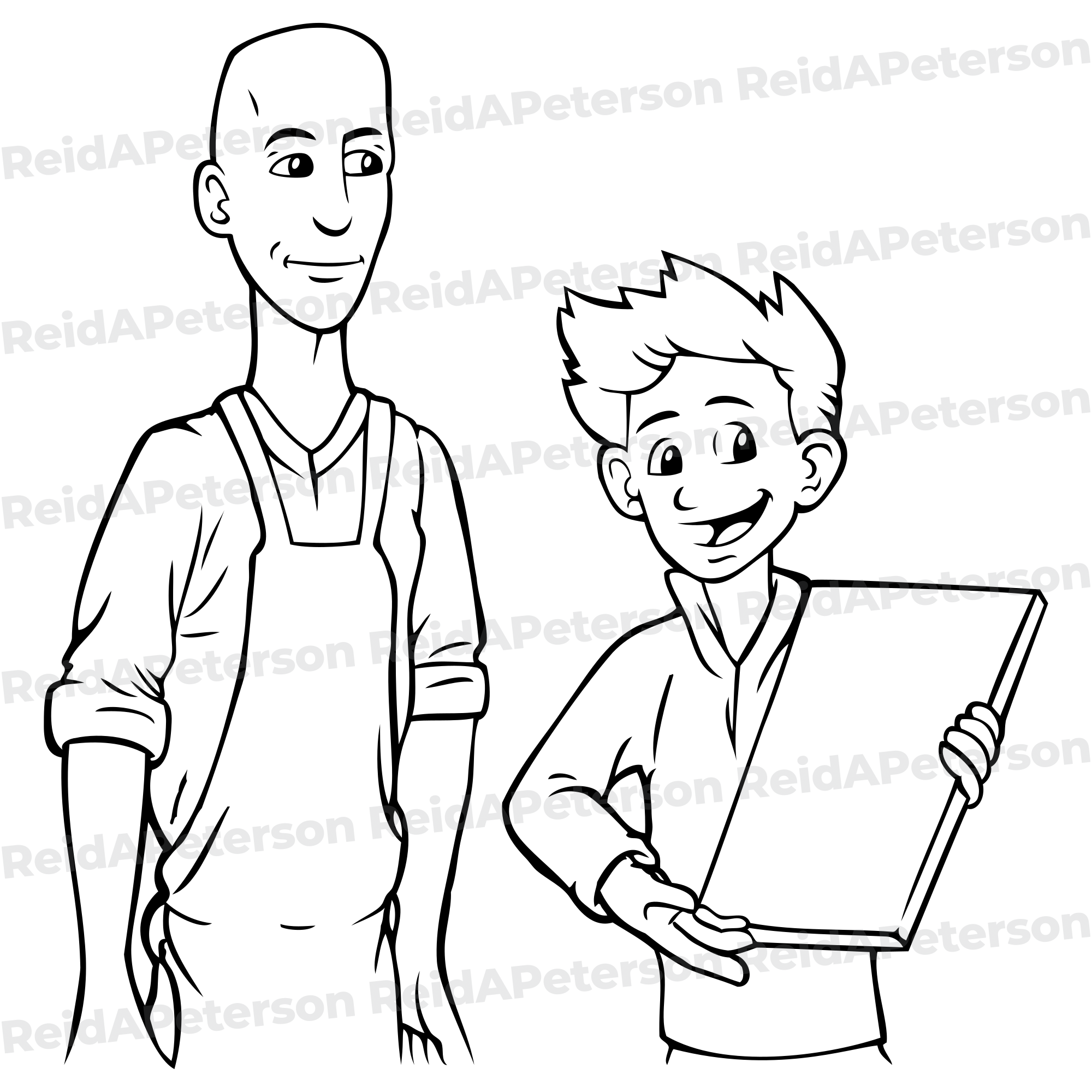 Hi-Res JPG Stock Image “Art Teacher Adult Student Kid Cartoon Artwork Presenting Talking”