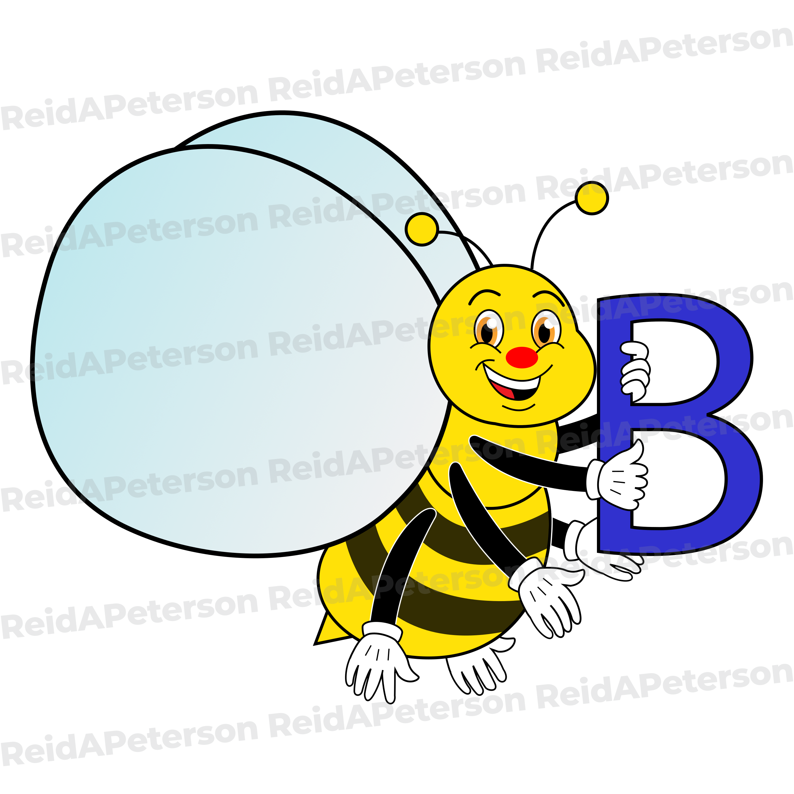 Hi-Res JPG Stock Image “Bee Cartoon Hands Blue B Smile Yellow Black”
