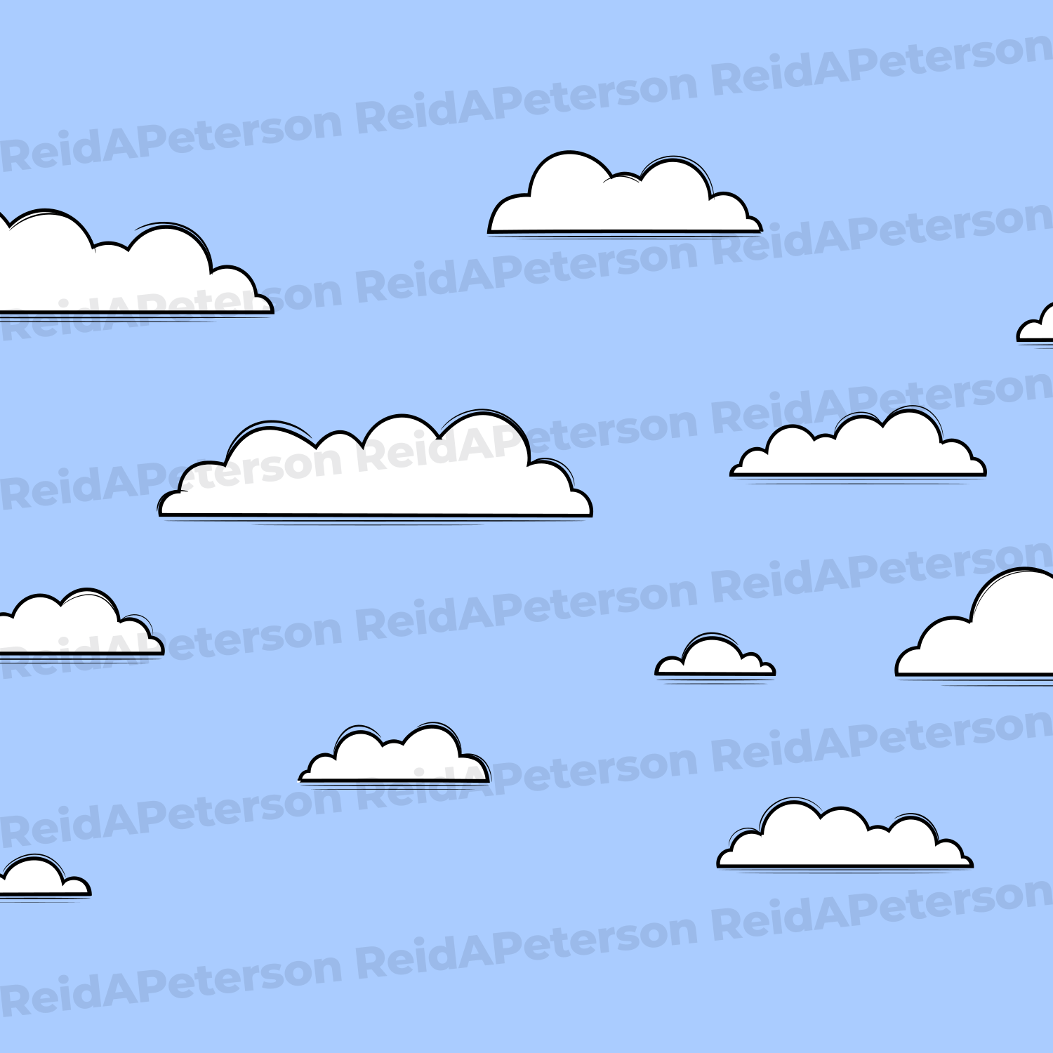 Hi-Res JPG Stock Image “Clouds Fluffy White Cartoon Sky Blue Background Simple Lines”