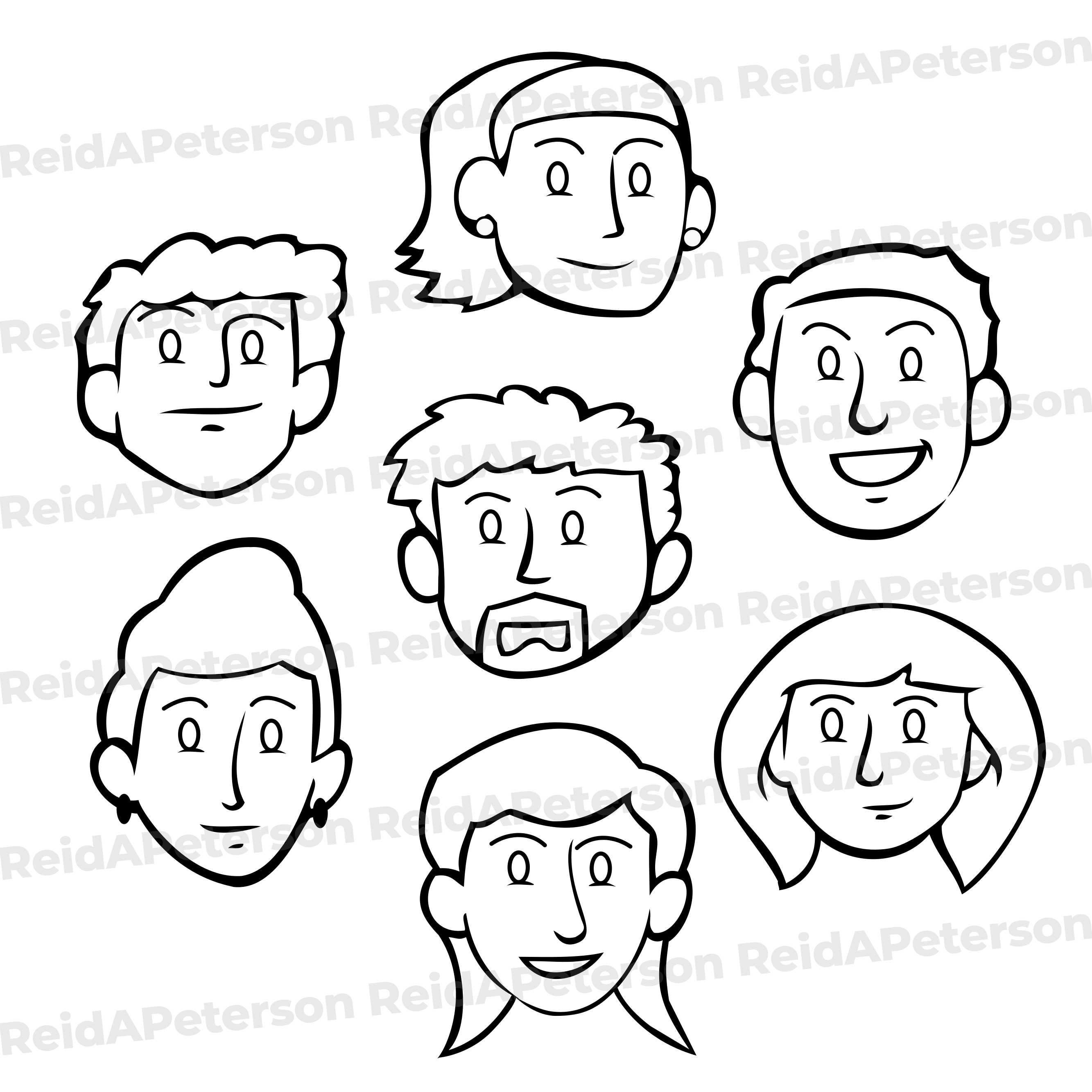 Hi-Res JPG Stock Image “Faces Heads Human Female Male Expressions Hairstyles”