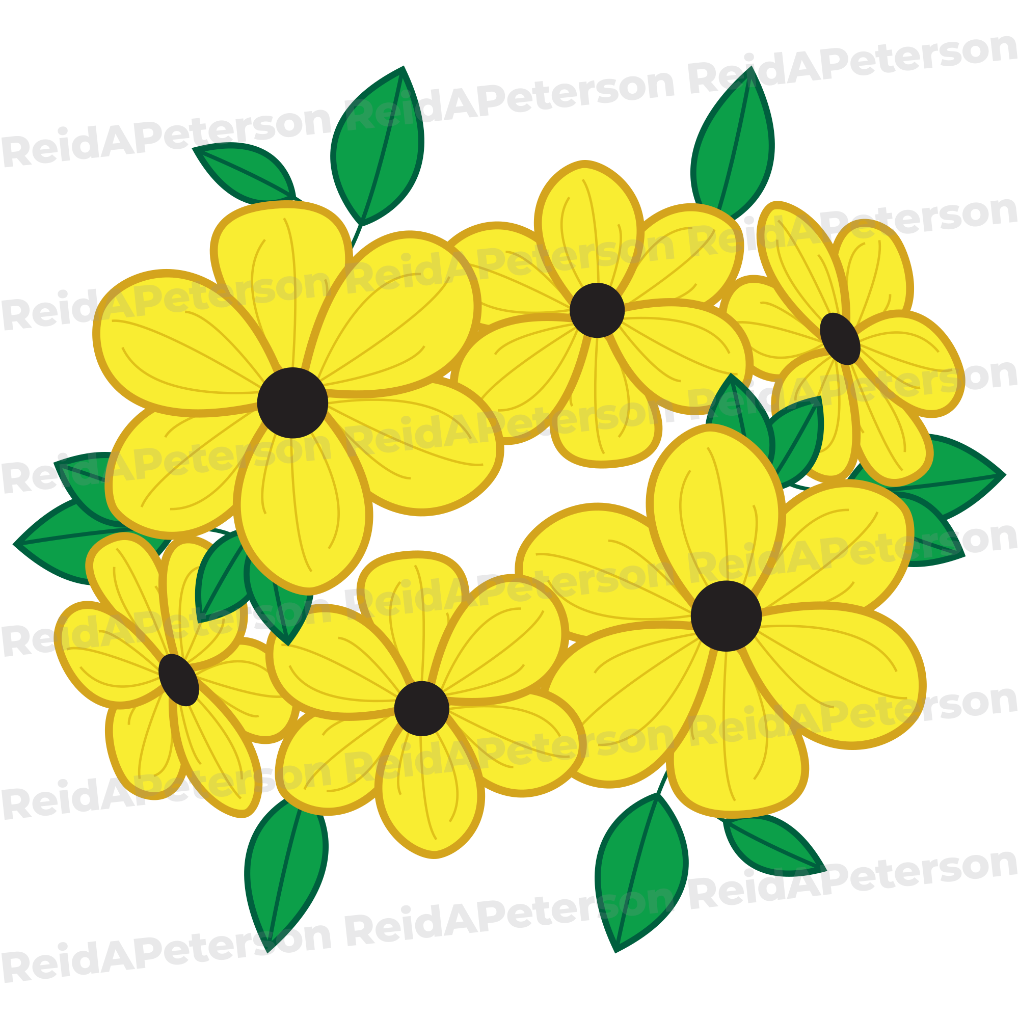 Hi-Res JPG Stock Image “Floral Wreath Yellow Petals Green Leaves Flowers Spring Bloom”