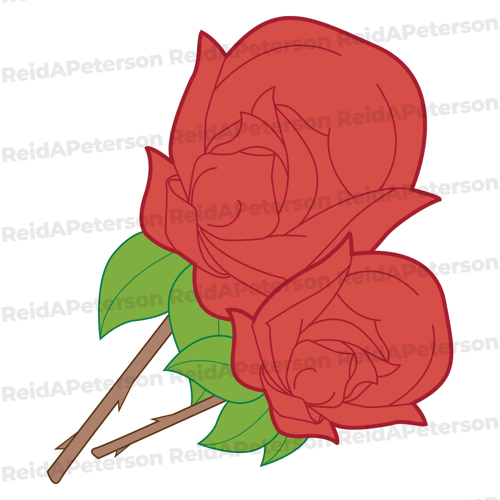Hi-Res JPG Stock Image “Rose Flowers Red Petals Green Leaves Thorny Stems”