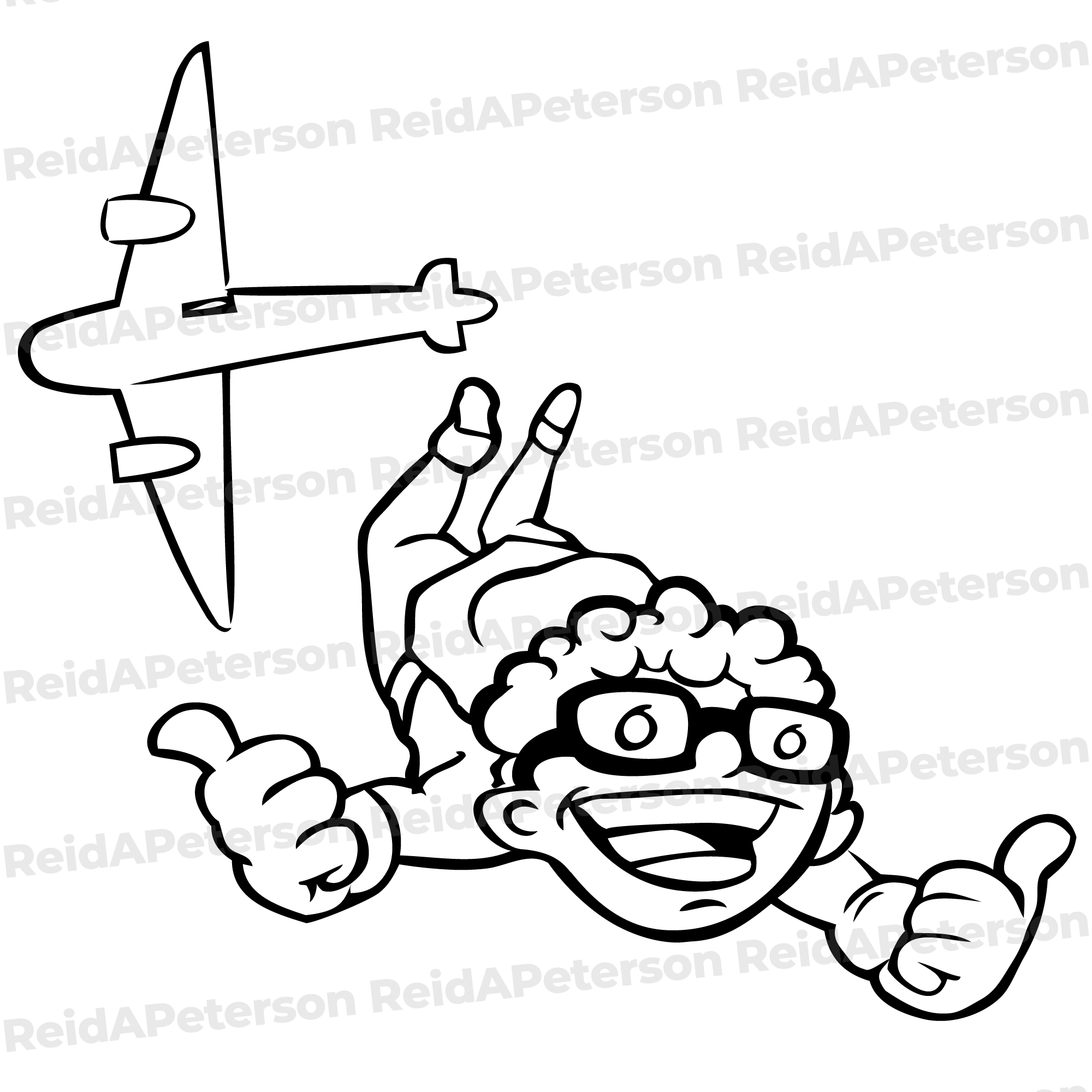 Hi-Res JPG Stock Image “Skydiving Airplane Sky Thumbs Up Goggles Man Cartoon”