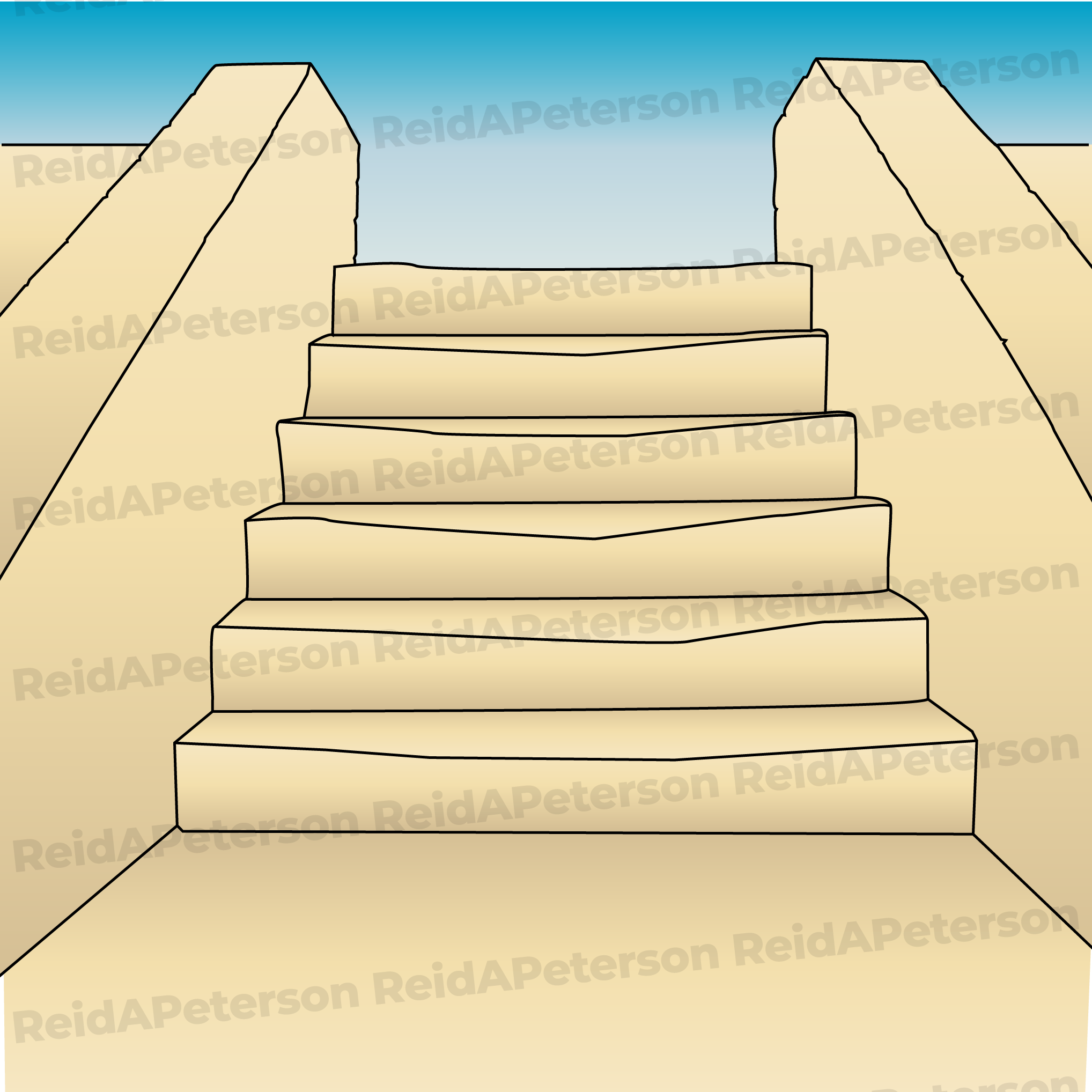Hi-Res JPG Stock Image “Steps Stairs Ruins Stone Sky Gradients Blue Tan”