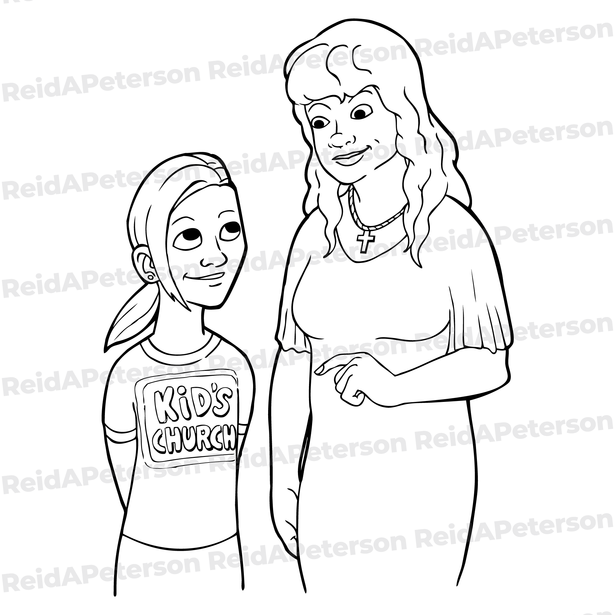 Hi-Res JPG Stock Image “Student Teacher Female Instruction Talking Smiling Church Faith”
