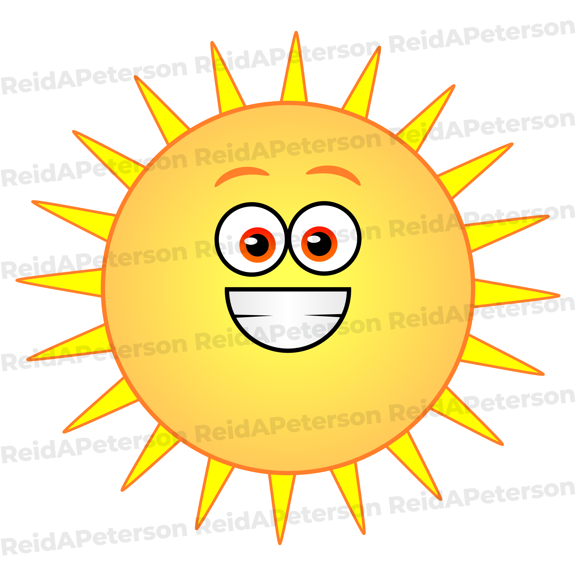 Hi-Res JPG Stock Image “Sun Sunshine Bright Character Cartoon Rays Face Smiling Yellow Orange Red”