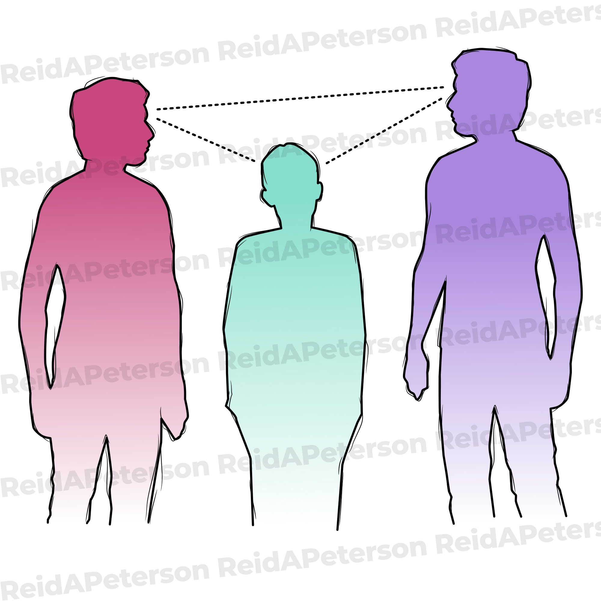 Hi-Res JPG Stock Image “Three People Adult Teen Child Internal Connection Red Purple Green”