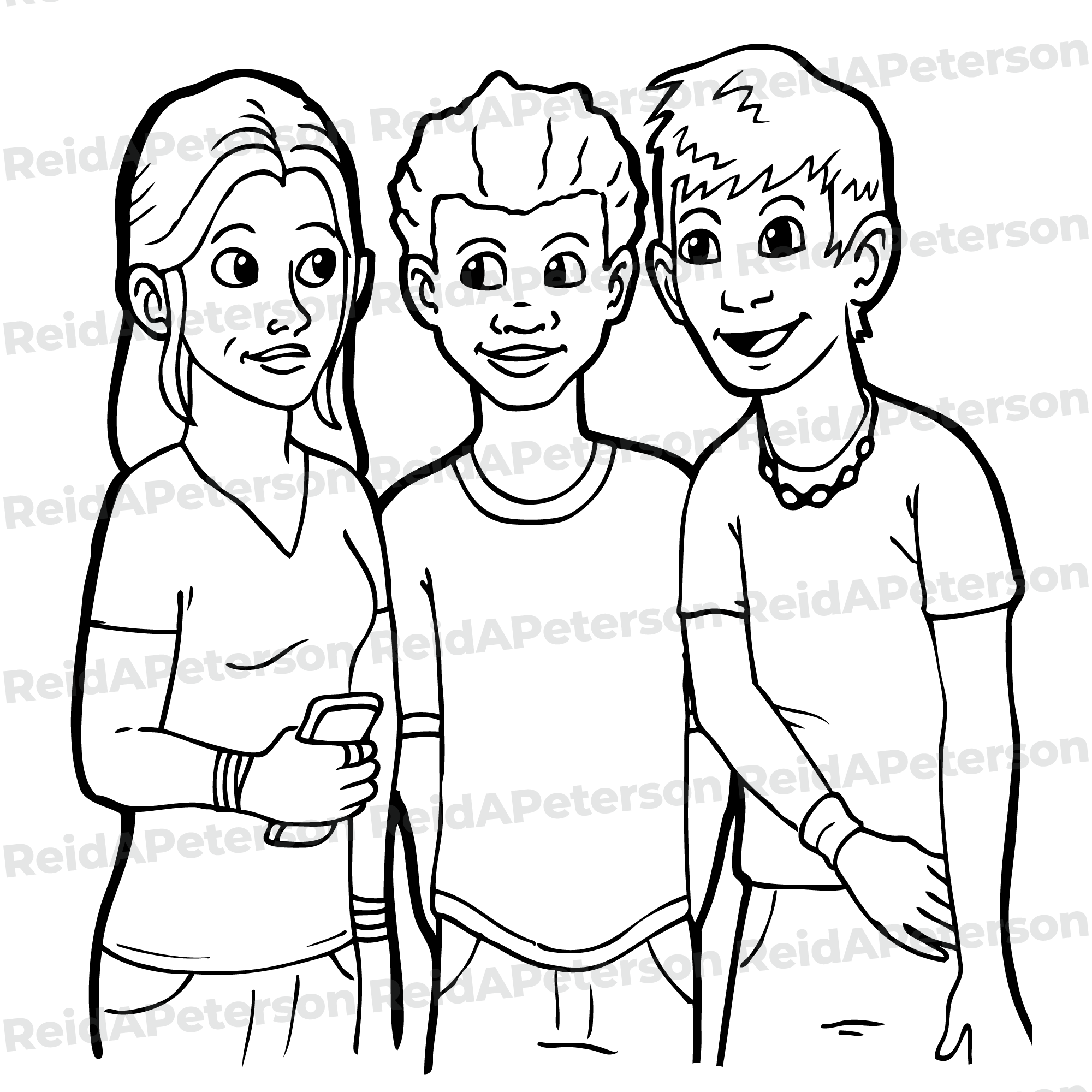 Hi-Res JPG Stock Image “Youth Teens Kids Male Female Three Friends Smiling”