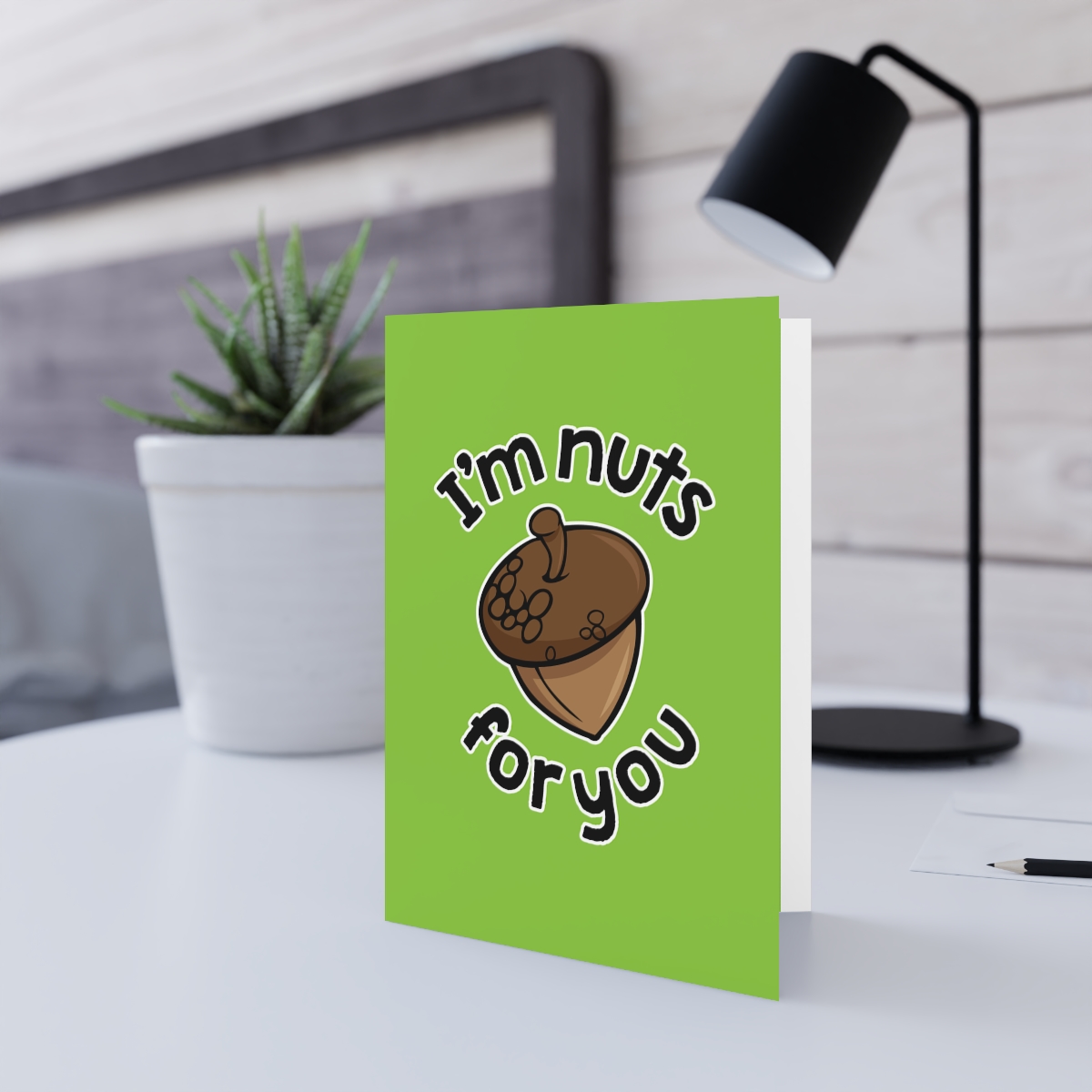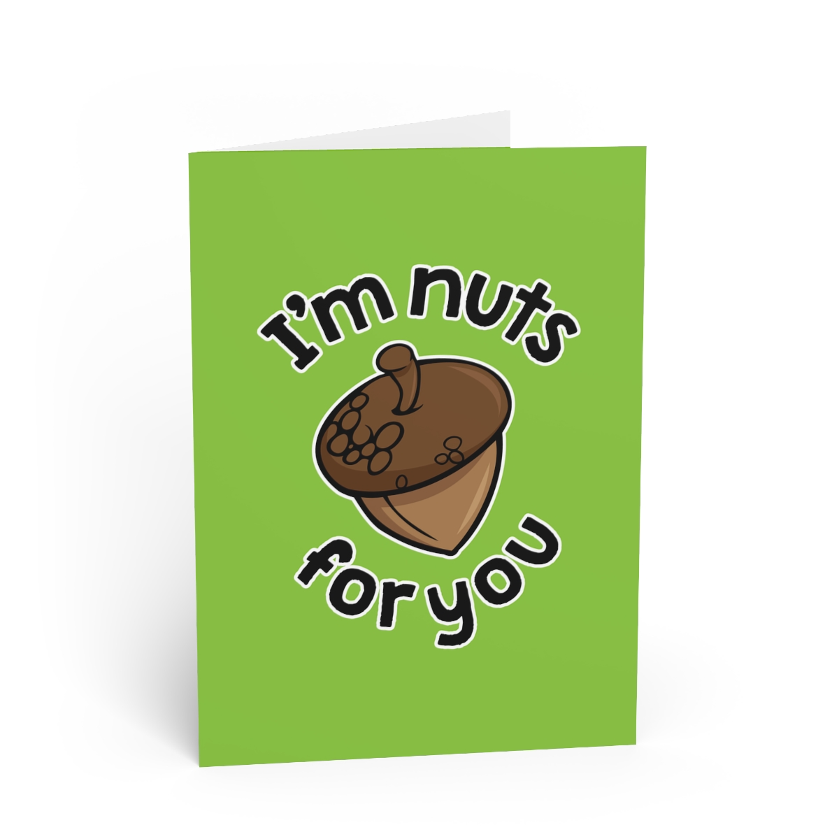 “I’m Nuts For You” design on Folded Greeting Card. Made from premium-quality paper and printed in picture-perfect resolution, these folded cards are the perfect complimentary gift for any occasion.