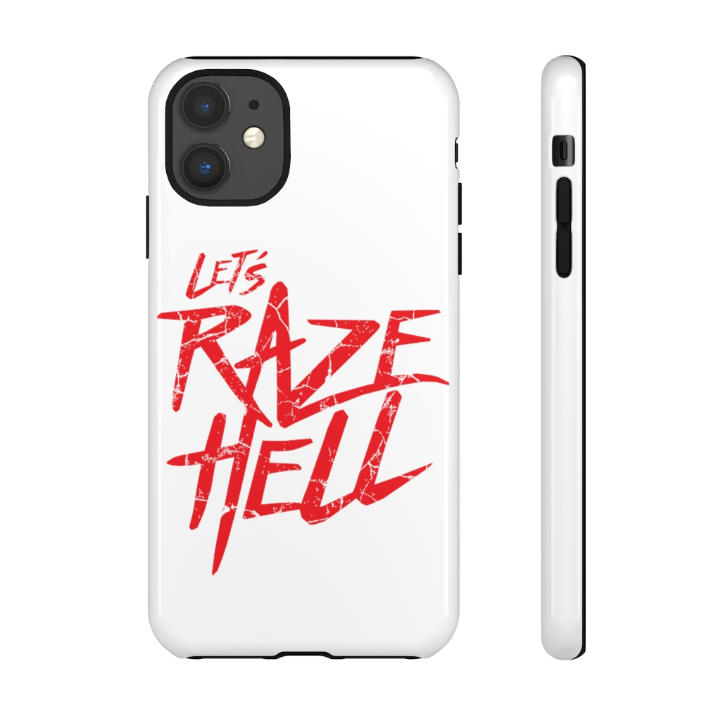 “Let’s Raze Hell” design on iPhone case. Accessorize your phone without sacrificing security with customized Tough Cases! Tough Cases use impact resistant polycarbonate outer shell and inner TPU liner for extra impact resistance. Keep your phone secure & stylish whether headed to the office or wrapped in pastels for a spring time soirée.