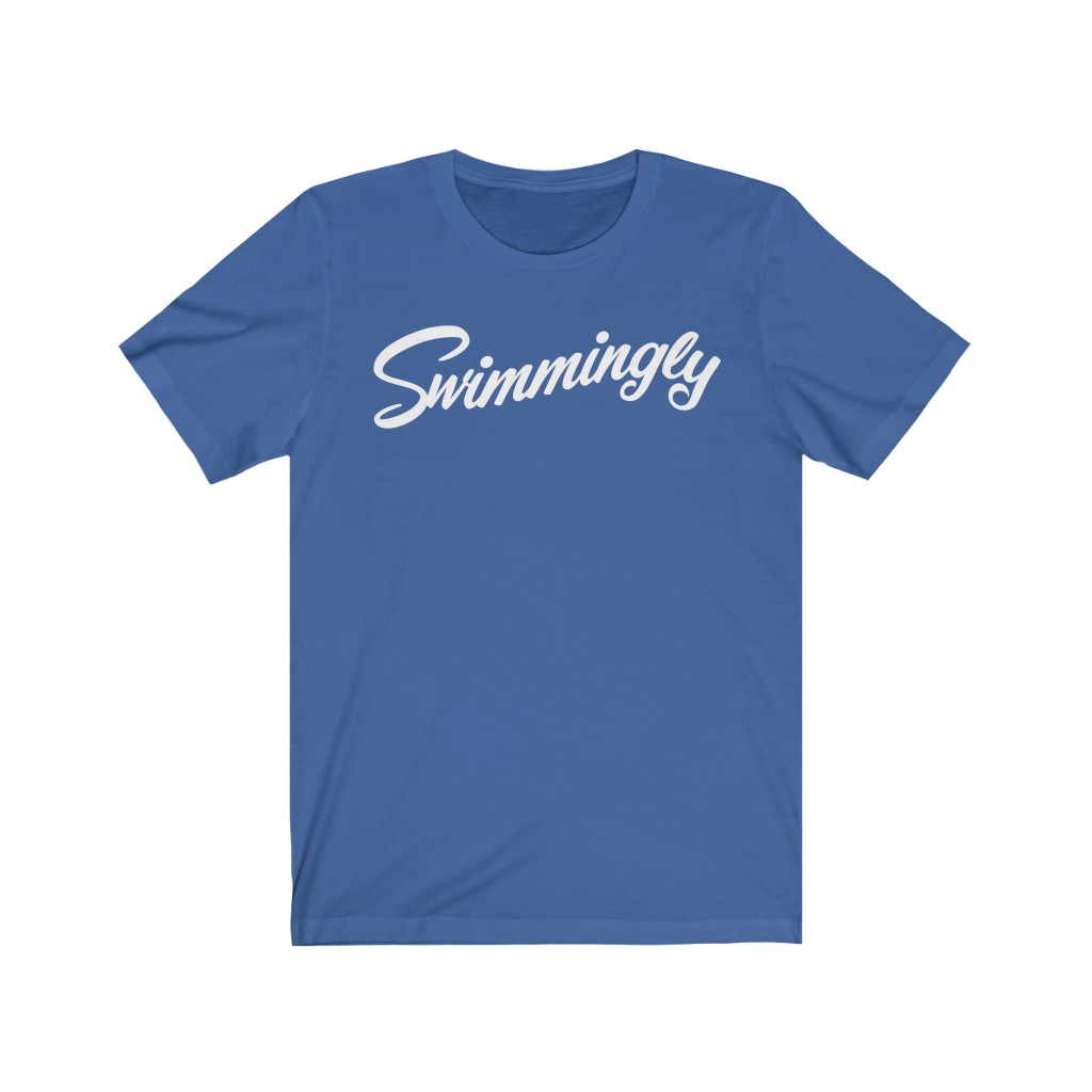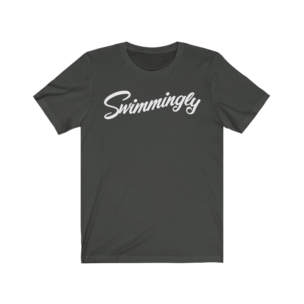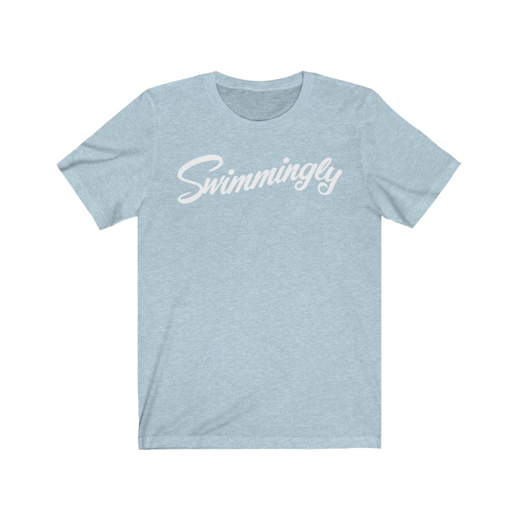 “Swimmingly” design on a Bella+Canvas Unisex Jersey Short Sleeve Tee. This updated unisex essential fits like a well-loved favorite. Super soft cotton and excellent quality print makes one to fall in love with it over and over again.