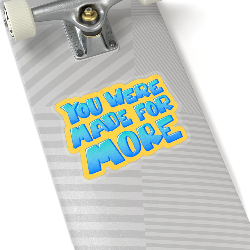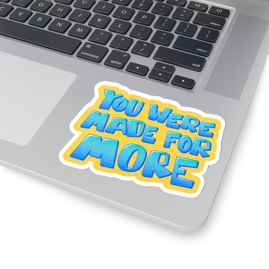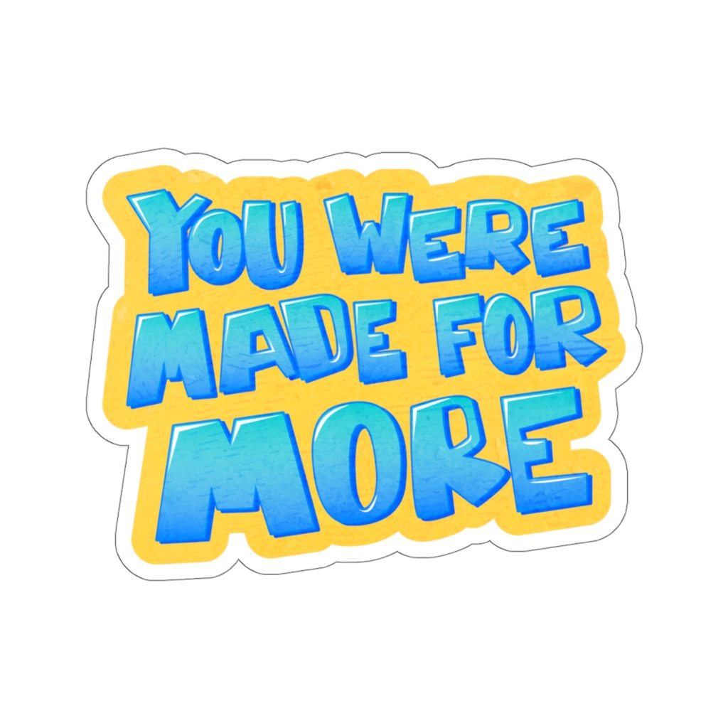 “You Were Made for More” design on a kiss-cut sticker. A kiss-cut provides you with the ultimate flexibility for implementing your vision—this method cuts the sticker into any shape you desire, while leaving the back intact so that it can be smoothly peeled off the page.