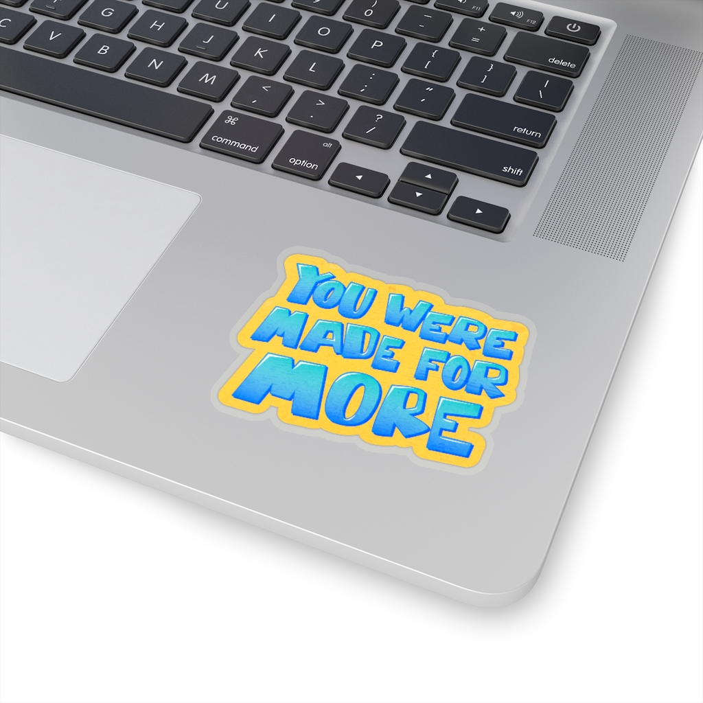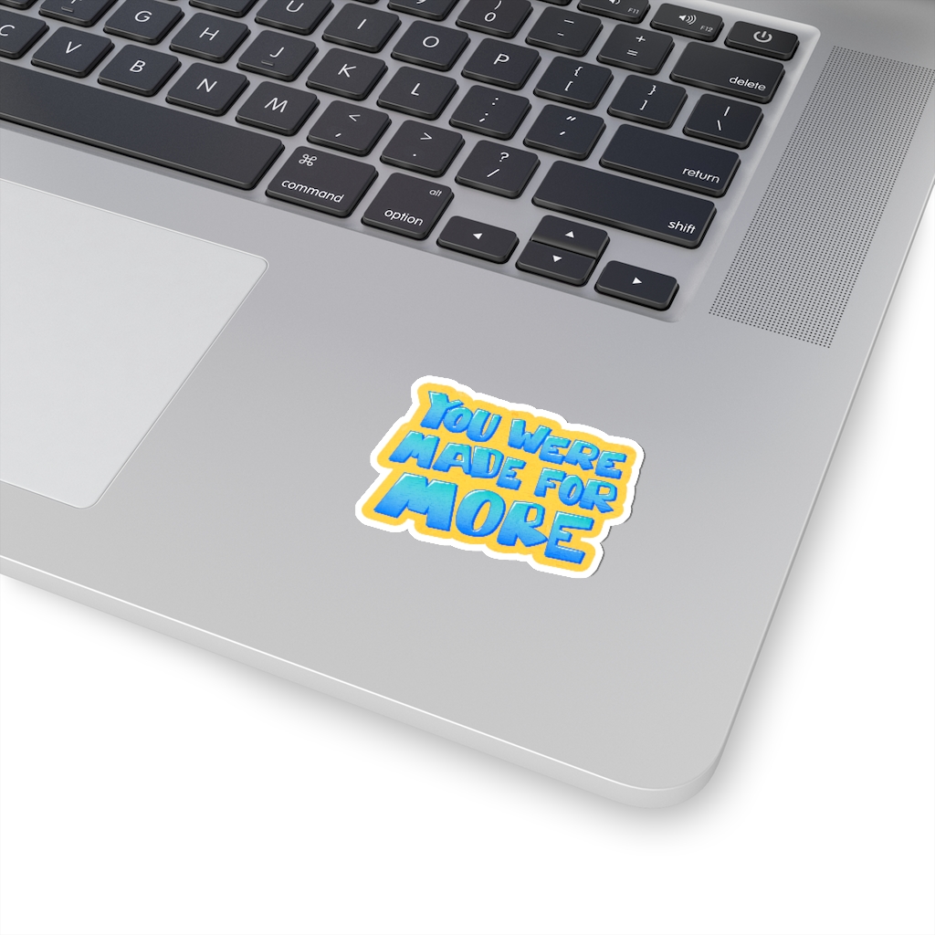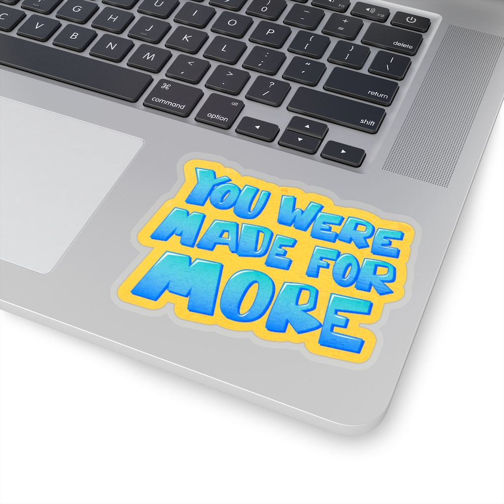 “You Were Made for More” design on a kiss-cut sticker. A kiss-cut provides you with the ultimate flexibility for implementing your vision—this method cuts the sticker into any shape you desire, while leaving the back intact so that it can be smoothly peeled off the page.